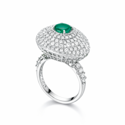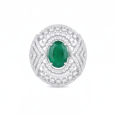 Make a bold yet sophisticated statement with the Emerald Royale Halo Ring — a masterpiece designed for those who appreciate timeless luxury. At its center sits a vivid round-cut emerald gemstone, symbolizing elegance, renewal, and prosperity. Surrounding it is an exquisite multi-layered halo of finely set brilliant stones, creating a mesmerizing dome-like brilliance that captures light from every angle.