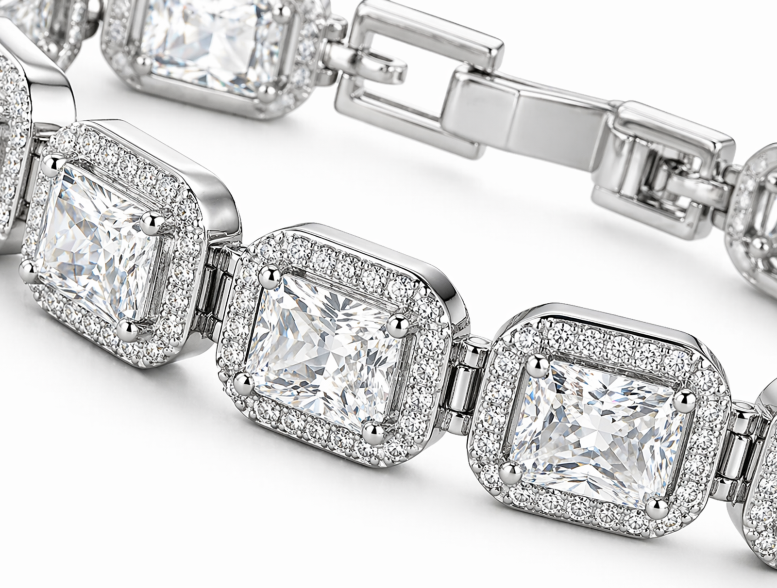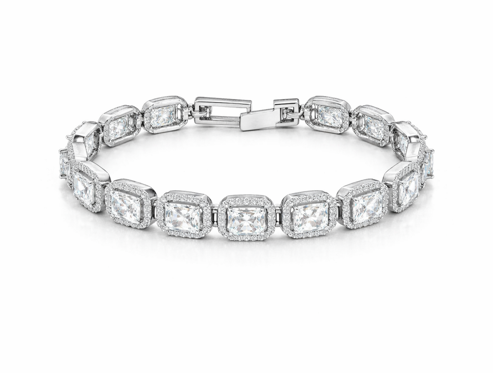 Exude refined sophistication with the Imperial Cushion Halo Bracelet — a modern classic designed to captivate. Featuring a seamless sequence of cushion-cut stones, each framed by a delicate halo of shimmering accents, this bracelet delivers a bold yet graceful brilliance that instantly elevates your look.