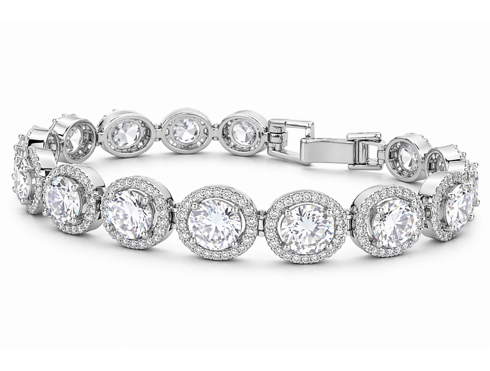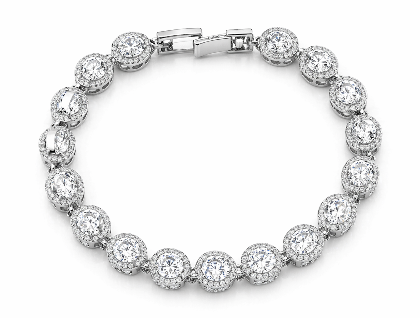 Refined, timeless, and effortlessly elegant — the Eternal Radiance Tennis Bracelet is a true symbol of classic luxury. Featuring a seamless row of brilliant round-cut stones, each encircled by a delicate halo of shimmering accents, this bracelet exudes unmatched sparkle and sophistication.